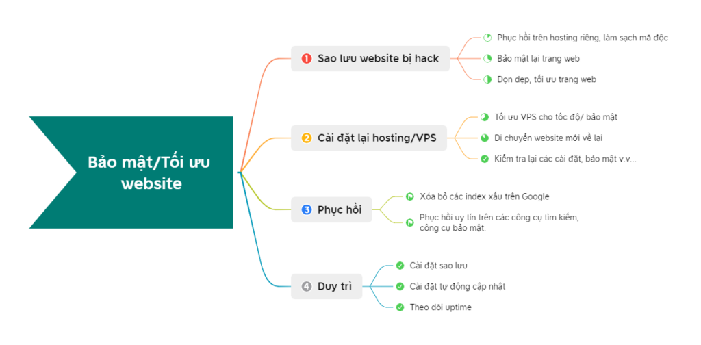 Làm sạch mã độc, phục hồi website bị hack, xóa bỏ link xấu.